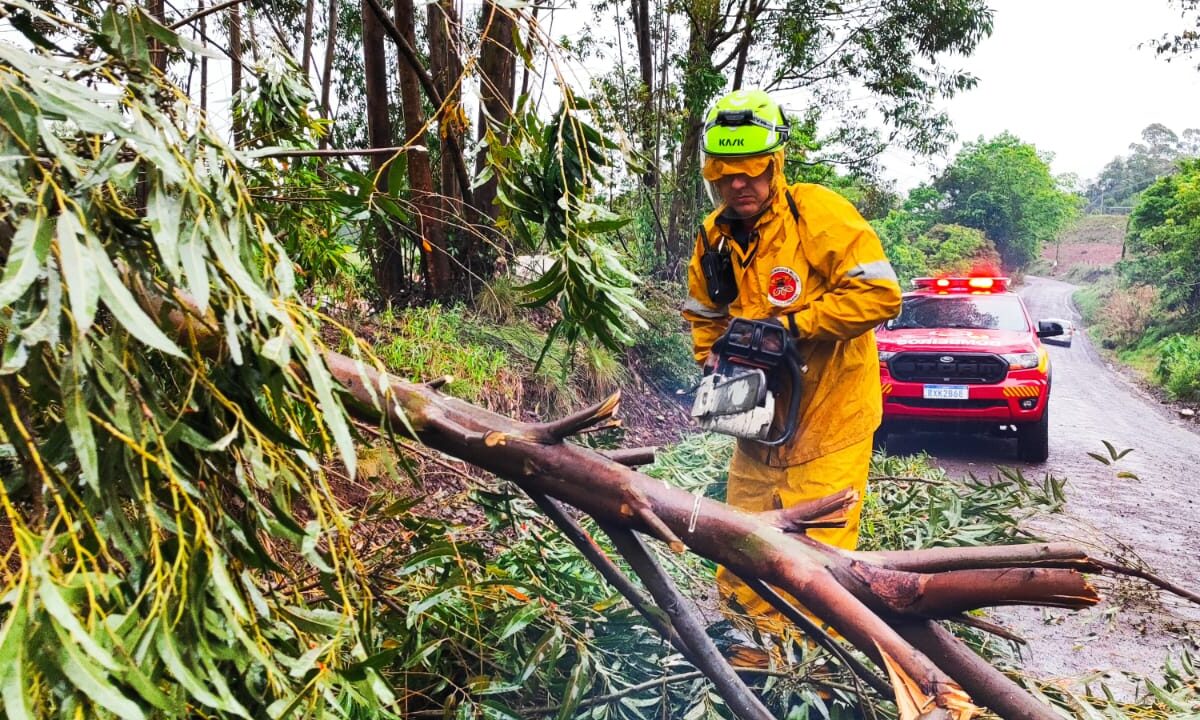 Na região de Canoinhas e Três Barras, equipes foram acionadas para diversas ocorrências de queda de árvores na BR-280 e em estradas locais. Em um dos atendimentos, em Valinhos, os bombeiros precisaram utilizar roupas de apicultor devido à presença de um enxame de abelhas, garantindo a segurança durante a remoção da árvore que bloqueava totalmente a via.