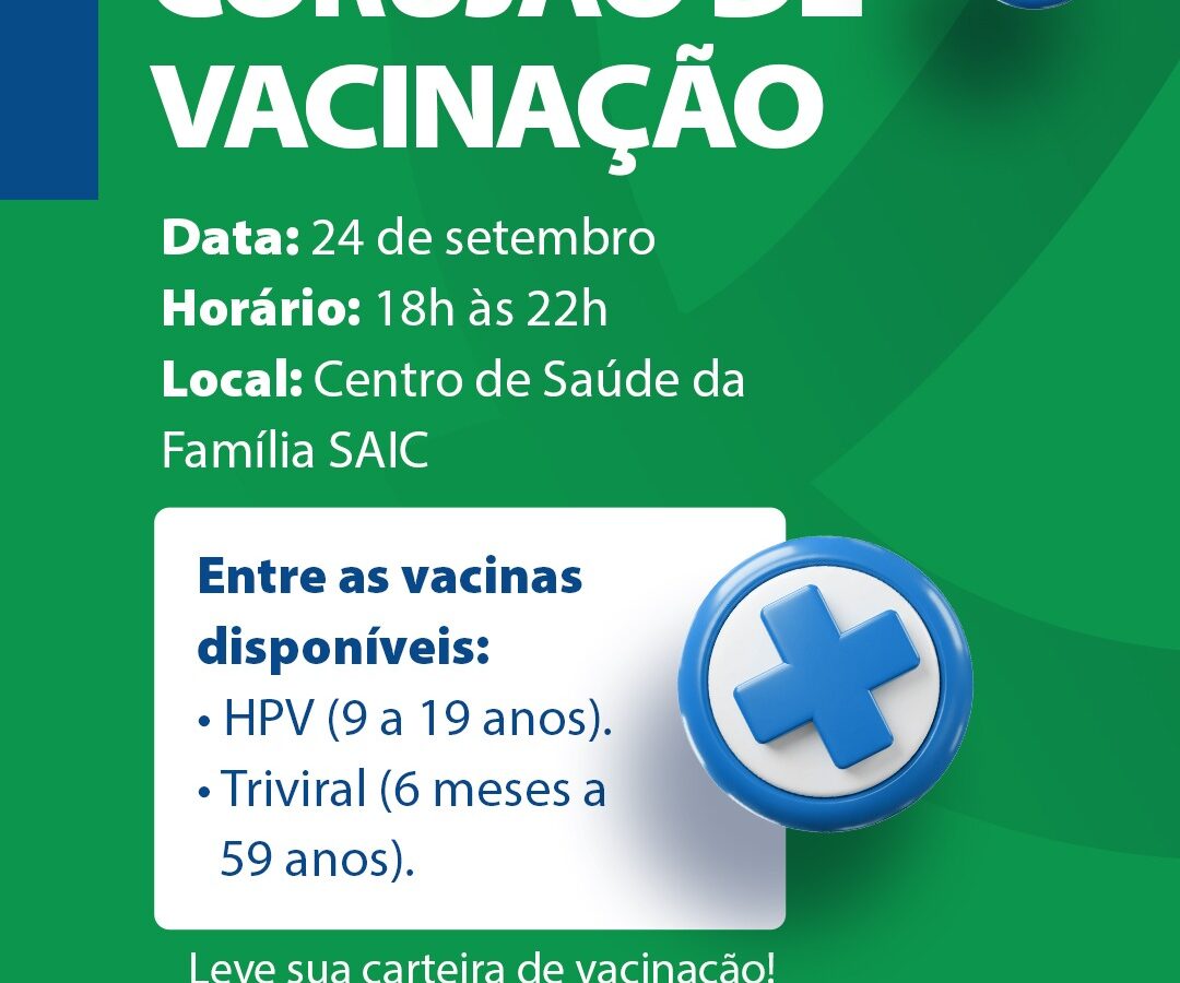 A Prefeitura de Chapecó, por meio da Secretaria de Saúde, realizará na próxima quarta-feira (24), um Corujão de Vacinação no Centro de Saúde da Família do SAIC, das 18h às 22h. De acordo com o secretário de Saúde, João Lenz, o foco é na atualização das carteiras vacinais da população. A ação acontecerá em horário estendido para facilitar o acesso dos trabalhadores e estudantes que não conseguem comparecer durante o dia.
